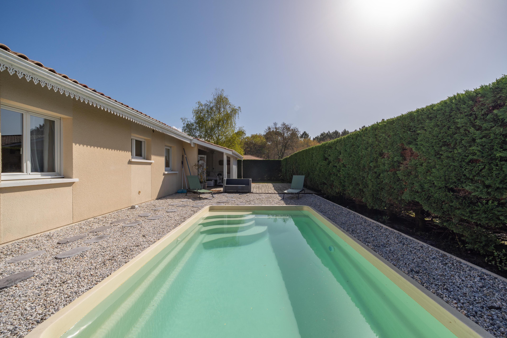 EN EXCLUSIVITE - LE TEICH CENTRE - Dans un quartier calme, à deux pas de la piste cyclable, venez découvrir cette belle maison familiale de plain-pied offrant confort et luminosité. D'environ 124 m² habitables, elle dispose d’une entrée avec placard, d’un vaste salon-séjour de 55 m² avec cheminée insert ouvert sur une cuisine équipée, de trois chambres dont une suite parentale avec salle d’eau privative, d’une salle de bains indépendante, d’un WC séparé, d’un cellier et d’un garage attenant de 23 m² isolé.À l’extérieur, vous profiterez d’une agréable terrasse bois couverte et d’une piscine, le tout au cœur d’un jardin arboré de plus de 1 000 m². Un bien rare à visiter sans tarder !