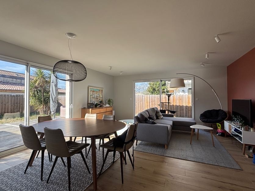 EXCLUSIVITE - LE TEICH - Découvrez cette charmante maison à proximité immédiate des commerces. Construite en 2022 sur un terrain d'environ 490 m², elle offre un espace de vie agréable d'environ 104 m², idéal pour une famille. La cuisine est entièrement équipée et ouverte sur un salon traversant lumineux se prolongeant à l'extérieur d'une terrasse en bois. Ce bien comprend 3 chambres, dont une suite parentale avec salle d'eau privative, une salle de bains et un WC indépendant. Une buanderie et un garage attenant d'envrion 15 m² complètent le bien. Pour plus d'informations n'hésitez pas à nous contacter !